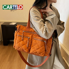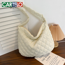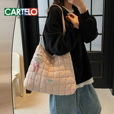 秋冬小众羽绒棉服包2025新款休闲大容量单肩通勤包百搭上课斜挎包