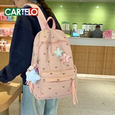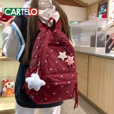 高颜值秋冬新款棉服双肩包韩系ins小清新蝴蝶结刺绣中学生双肩包