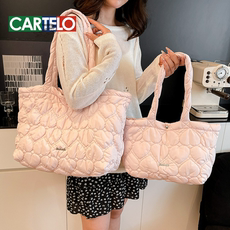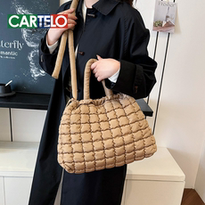通勤慵懒风托特包2025新款学生上课单肩包韩版棉服软糯手提包包女