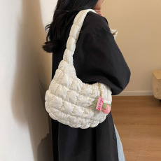 大学生上课通勤棉服包女慵懒风布包秋冬包包单肩斜挎饺子包腋下包
