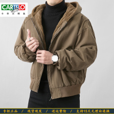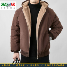 男士冬装加厚加绒夹克双面穿连帽款外套休闲棉衣座山雕