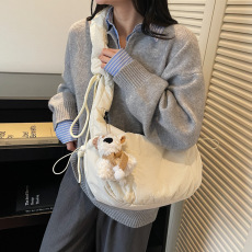 秋冬新款高颜值纯色简约奶乎乎棉服包女休闲轻便通勤大容量斜挎包