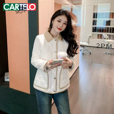2025秋冬季新款长袖上衣棉服外套休闲百搭白色时尚女装棉衣菱格