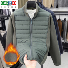 男士奥粒绒抓绒拼接款绵羊毛填充保暖棉衣羽绒服上衣